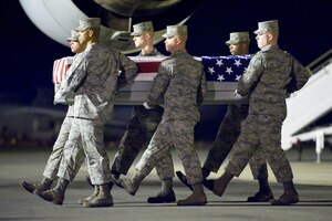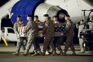 The hot iron presses the wrinkles on what seems like endless lines of red and white stripes - on one section of a symbol that stands for our country's freedom. Each movement is deliberate, for that symbol, the U.S. Flag, will drape the casket of a fallen hero. While ironing can seem like a chore to