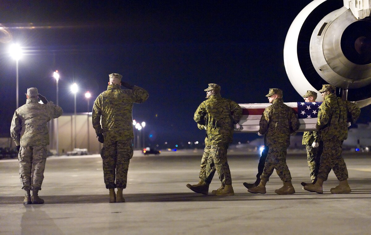 A U.S. Marine Corps carry team transfers the remains of Marine Cpl. Johnathan W. Taylor, of Homosassa, Fla., at Dover Air Force Base, Del., Feb. 25, 2011. Taylor was assigned to the 2nd Battalion, 8th Marine Regiment, 2nd Marine Division, II Marine Expeditionary Force, Camp Lejeune, N.C. (U.S. Air Force photo/Roland Balik)