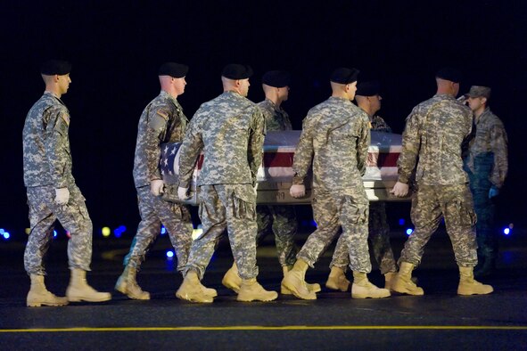 A U.S. Army carry team transfers the remains of Army Spc. Nathan E. Lillard, of Knoxville, Tenn., at Dover Air Force Base, Del., Nov. 16, 2010. Lillard was assigned to the 1st Battalion, 327th Infantry Regiment, 1st Brigade Combat Team, 101st Airborne Division (Air Assault), Fort Campbell, Ky. (U.S. Air Force photo/Roland Balik)